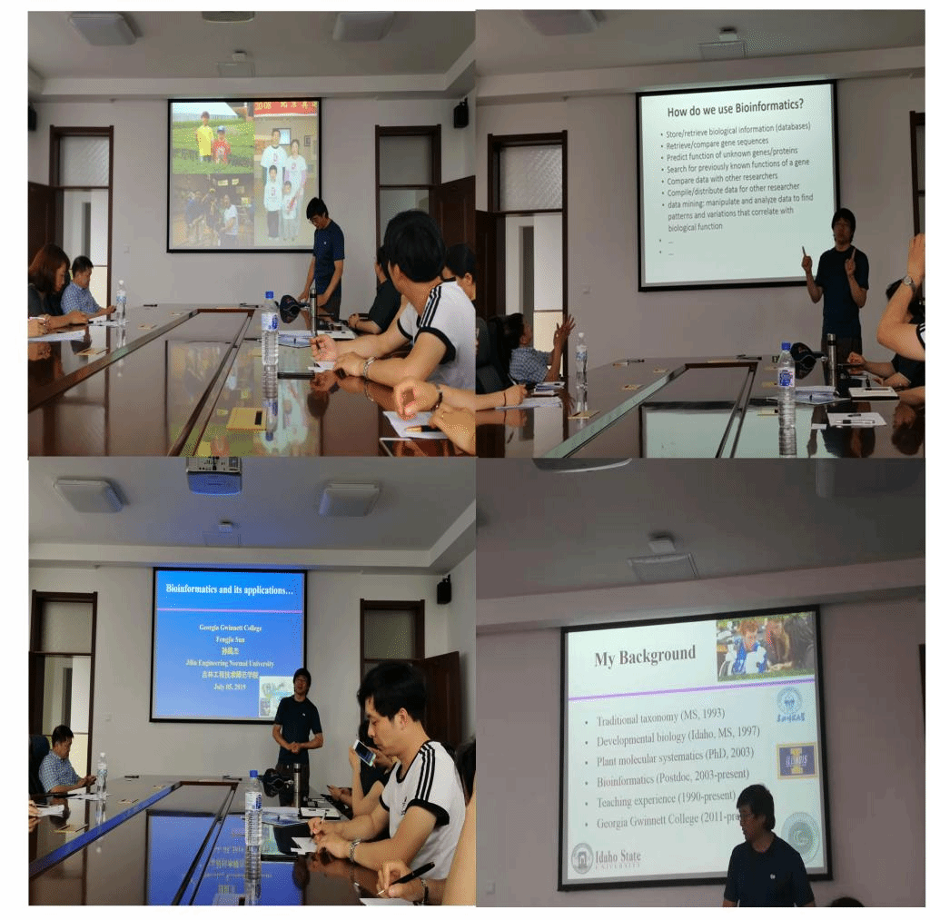 孙凤杰教授现任美国佐治亚杰温特大学教授,主要从事生物信息学及进化论的研究。研究期间发表多篇高档次SCI文章,学术造诣深厚。现为BMRI杂志审稿人。七月五日莅临我校,来给工师食品学院的师生带来了精彩的讲座。