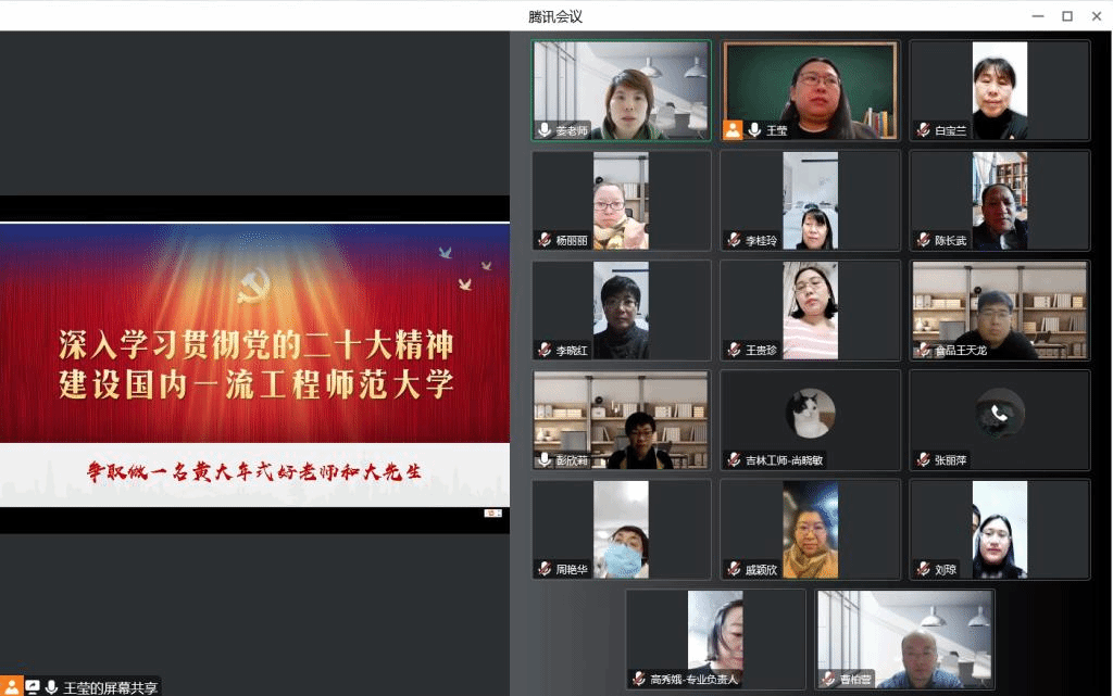 各党支部召开全体党员大会认真组织落实会议精神,教工第一党支部于11月18日首先开展了《领悟党的二十大精神,践行新时代共产党员育人使命》报告会。