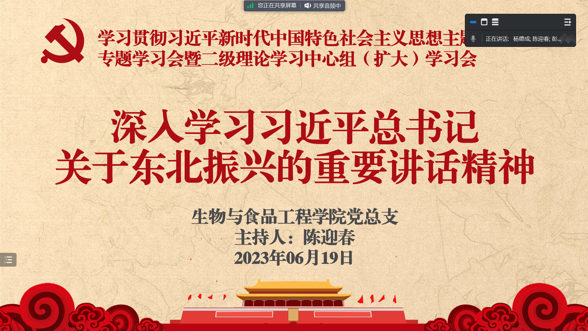 学院二级理论学习中心组开展主题教育专题学习——深入学习习近平总书记关于东北振兴的重要讲话精神 来源:党建动态 2023/06/20 6月19日,永利官方网站二级理论学习中心组开展了主题教育专题学习活动,由陈迎春书记领学,主要从8个方面带领大家共同学习习近平总书记关于东北振兴的重要讲话精神。通过学习,全体成员深刻领会到推进新时代东北全面振兴,是一项伟大而艰巨的任务,我们要坚定信心迎难而上,撸起袖子加油干,就一定能把新时代东北振兴这项宏伟事业推向新阶段,为实现“第二个百年”奋斗目标作出更大贡献。