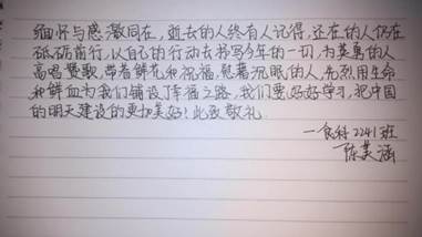 永利官方网站本次红色经典学习交流会结束后各团支部成员感受颇深,纷纷以书写缅怀寄语、创作散文诗歌等多种形式寄托哀思。