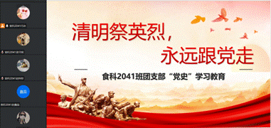 食科2243团支部召开了“清明祭英烈,永远跟党走”专题团课,班级同学踊跃参加,一起回顾红色时代,了解英烈故事,学习英烈的奉献精神。通过此次活动表达了对英烈的追思。同学们要坚定不移的坚持中国共产党的领导。只有党才能带领我们奔向美好的生活,将英烈们用自己的血和肉打下的江山保护好,一代一代的传承下去。