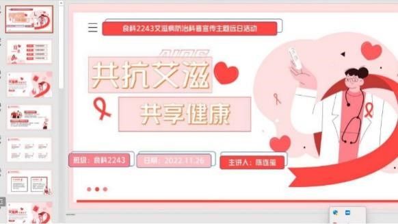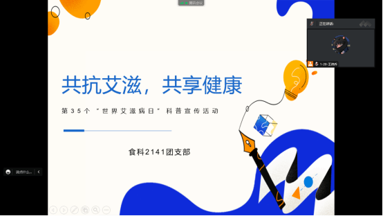 2022年12月1日是第35个“世界艾滋病日”,为加强预防艾滋病教育工作,进一步推动新时代艾滋病防治工作的高质量发展,让更多青年了解艾滋病,正视艾滋病,了解艾滋病的传播途径、发病机理和症状,以更好的遏制艾滋病的传播和蔓延,呼吁所有学生关注艾滋病的防治问题,永利官方网站所有团支部在腾讯会议开展了以“共抗艾滋,共享健康”为主题的线上主题团会。