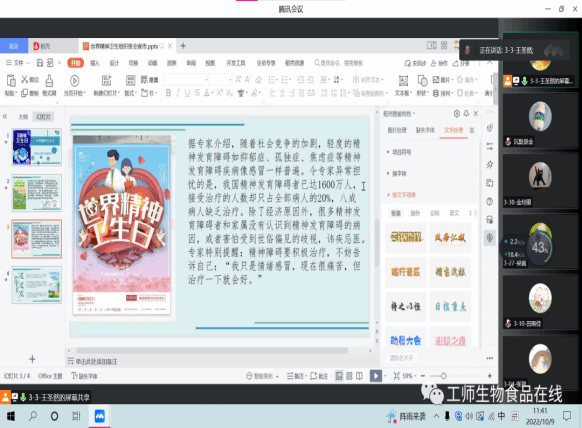 “世界精神卫生日”由世界精神卫生联盟于1992年提出,旨在提高广大群众对精神卫生重要性和迫切性的认识,普及精神卫生知识和技能,提高公众对精神发育障碍疾病的认识,分享科学有效的疾病知识,消除公众的偏见。学校开展心理健康教育是为了缓解学生的心理压力,提升学生的心理品质,学校每年都会开展多种多样的心理辅导课,心灵咨询室等。2022年10月9日,永利官方网站各班级在腾讯会议上召开世界精神卫生日心理主题班会:
