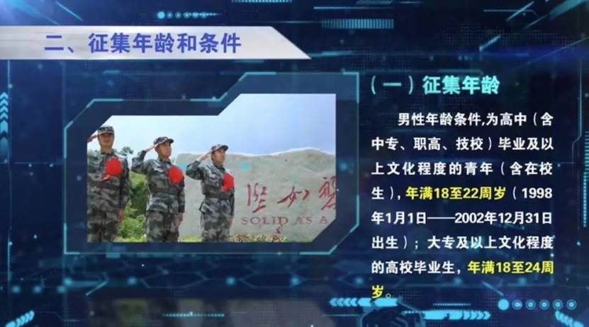 下半年应征报名:普通高中应届毕业生和普通高等学校全日制应届毕业生及在校生,年满18至22周岁。