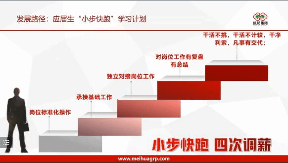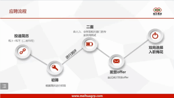 宣讲会上,梅花宣讲人详细地介绍了一下公司情况和主营业务、发展历程、招聘岗位信息、薪酬福利、工作地点、岗位晋升等内容。