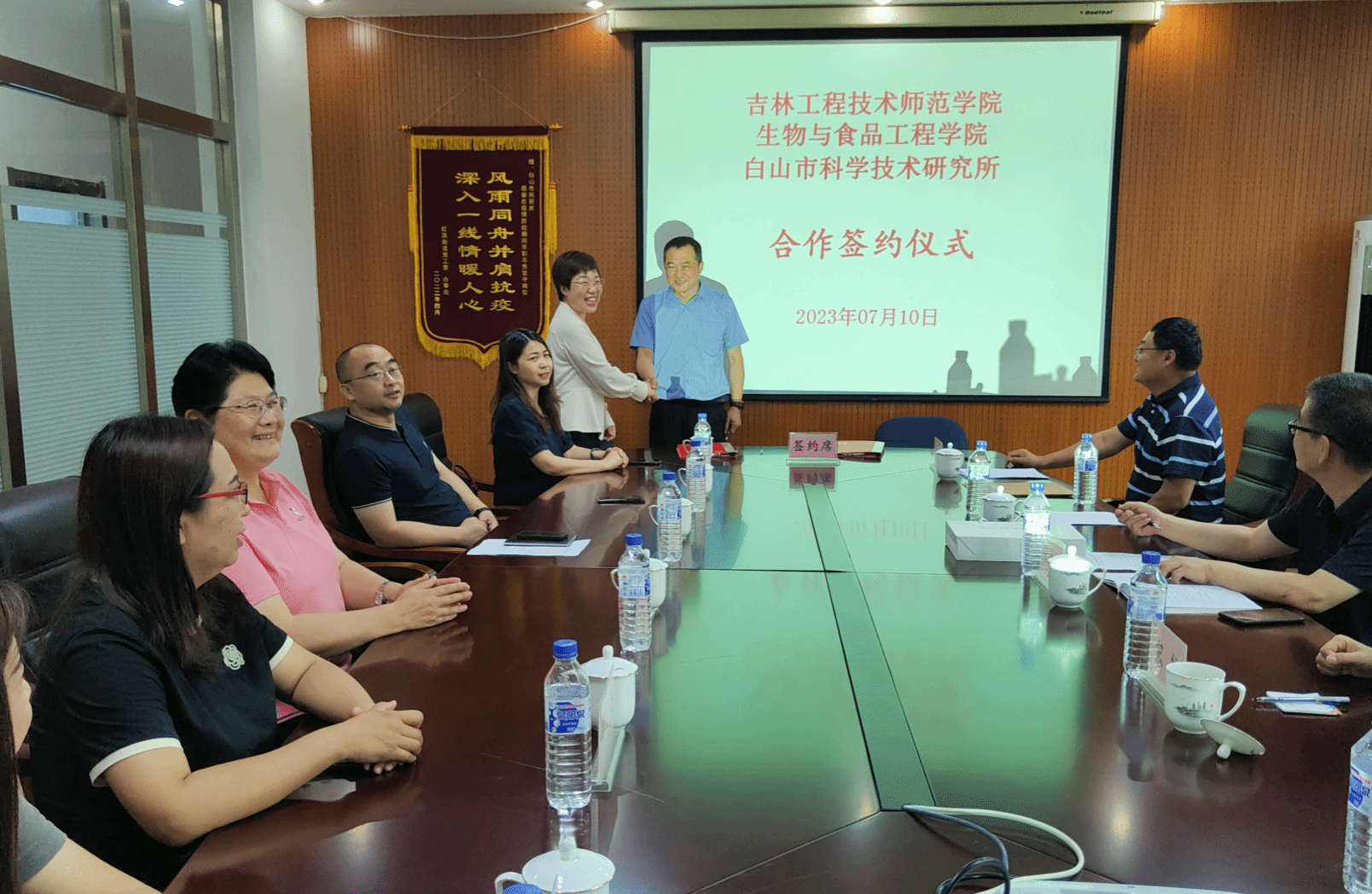 2023年7月9日至10日,永利官方网站院长彭欣莉教授带队,应邀到白山市科学技术研究所进行学术交流并签署战略框架合作协议。同行人员有吉林省杂粮资源开发与产业化协同创新中心主任朱珠教授、永利官方网站副院长李占东博士、协同创新中心秘书王莹博士、生物工程系系主任宋琼博士、食品科学与工程教研室主任董艳娇博士以及生物工程教研室教师柳英奇博士。