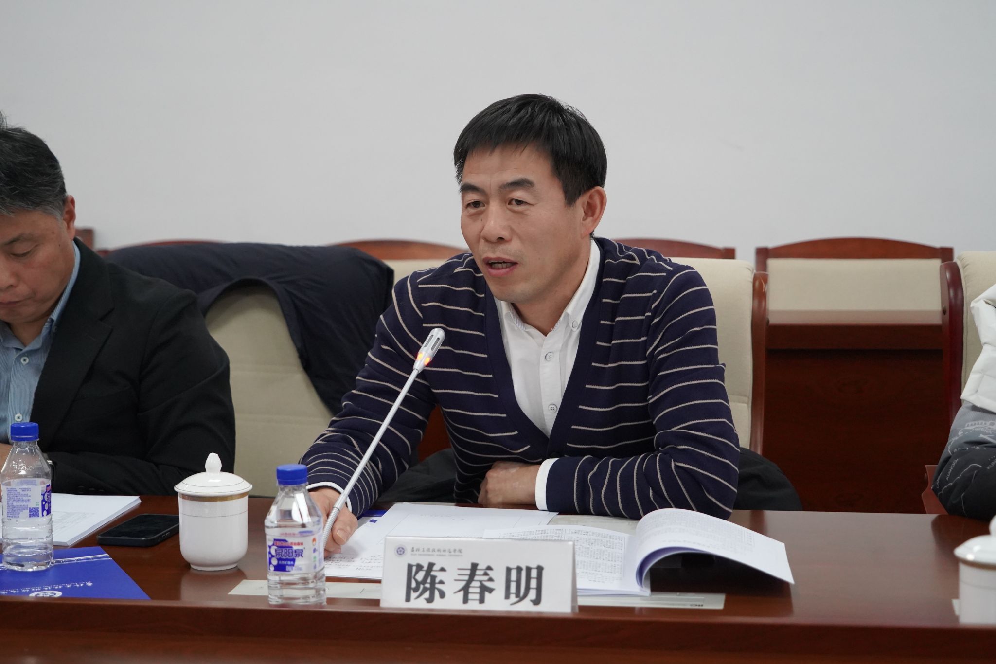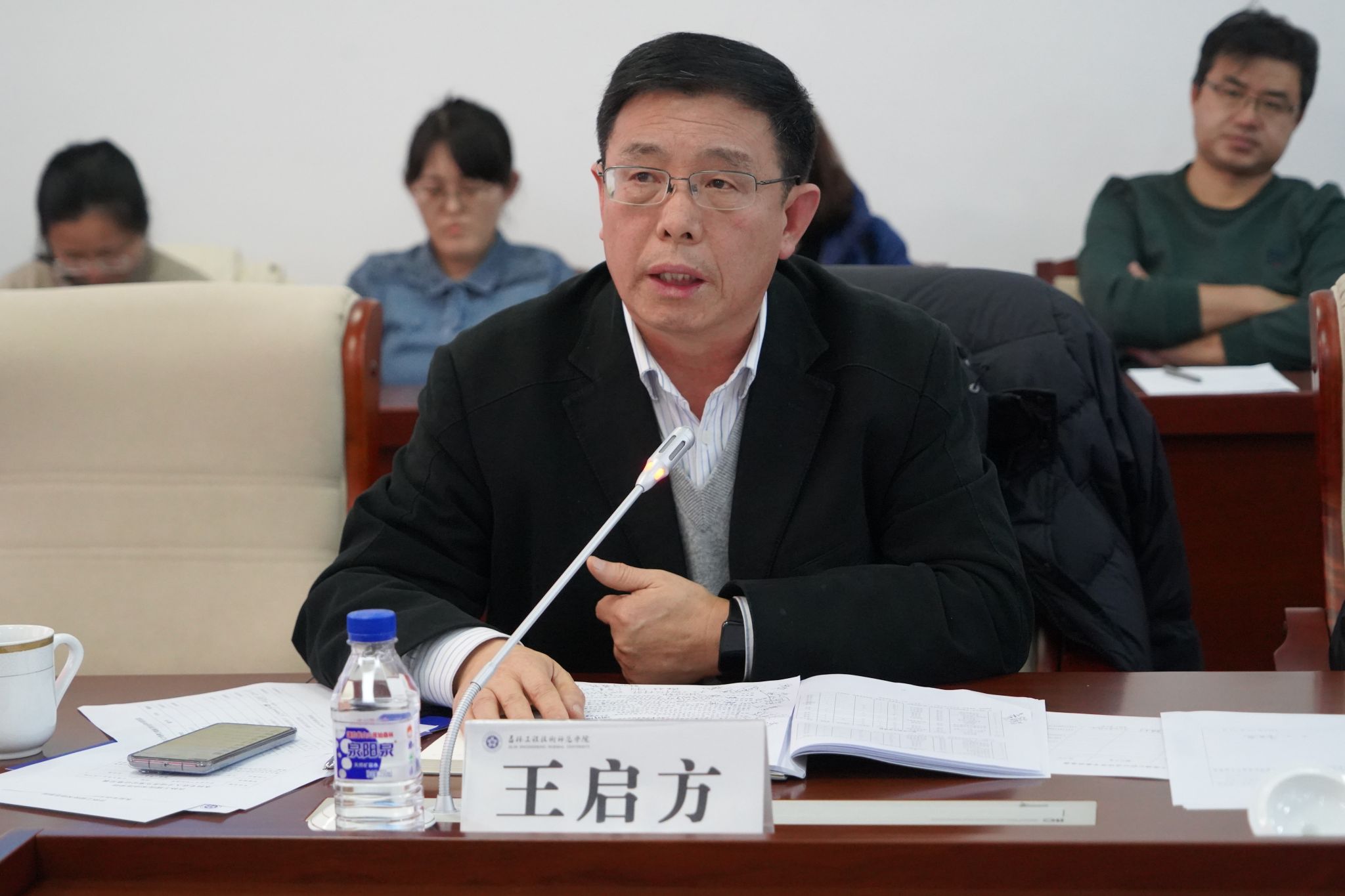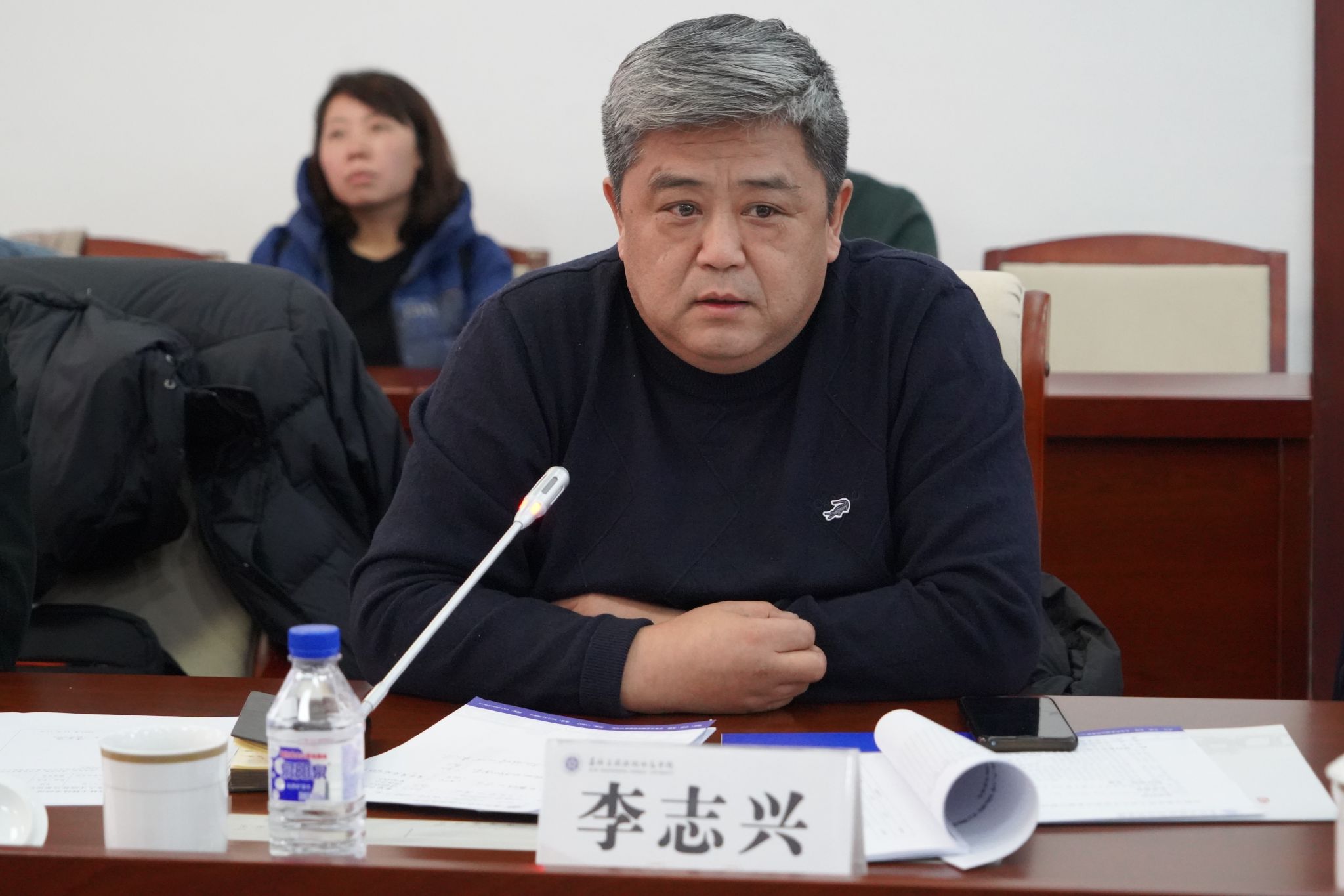 李志兴主任介绍吉林省产品质量监督检验院的基本情况,与学院在课程建设、实习实训、企业培训方面的合作,食品类专业应加强在食品标准法规、质量管理体系、食品工艺、工程设计等方面内容的设计,培养适合企业需求的食品类人才。
