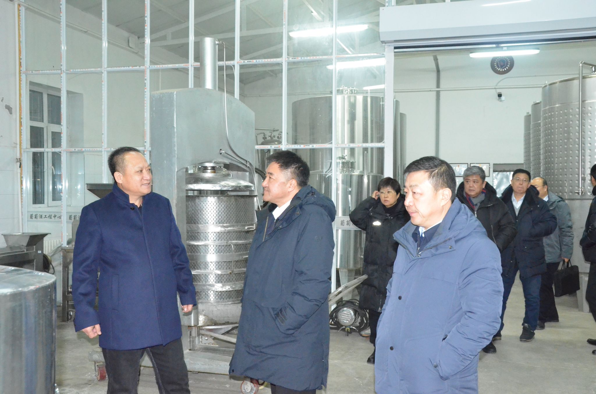 研讨会结束后,校外专家考查吉林省高等学校葡萄酒研发工程中心,陈长武老师介绍工程中心的历史沿革、葡萄酒生产设备、灌装生产线及开发的产品情况,专家品尝了工程中心的专利产品-冰酒系列产品并给予高度的评价。