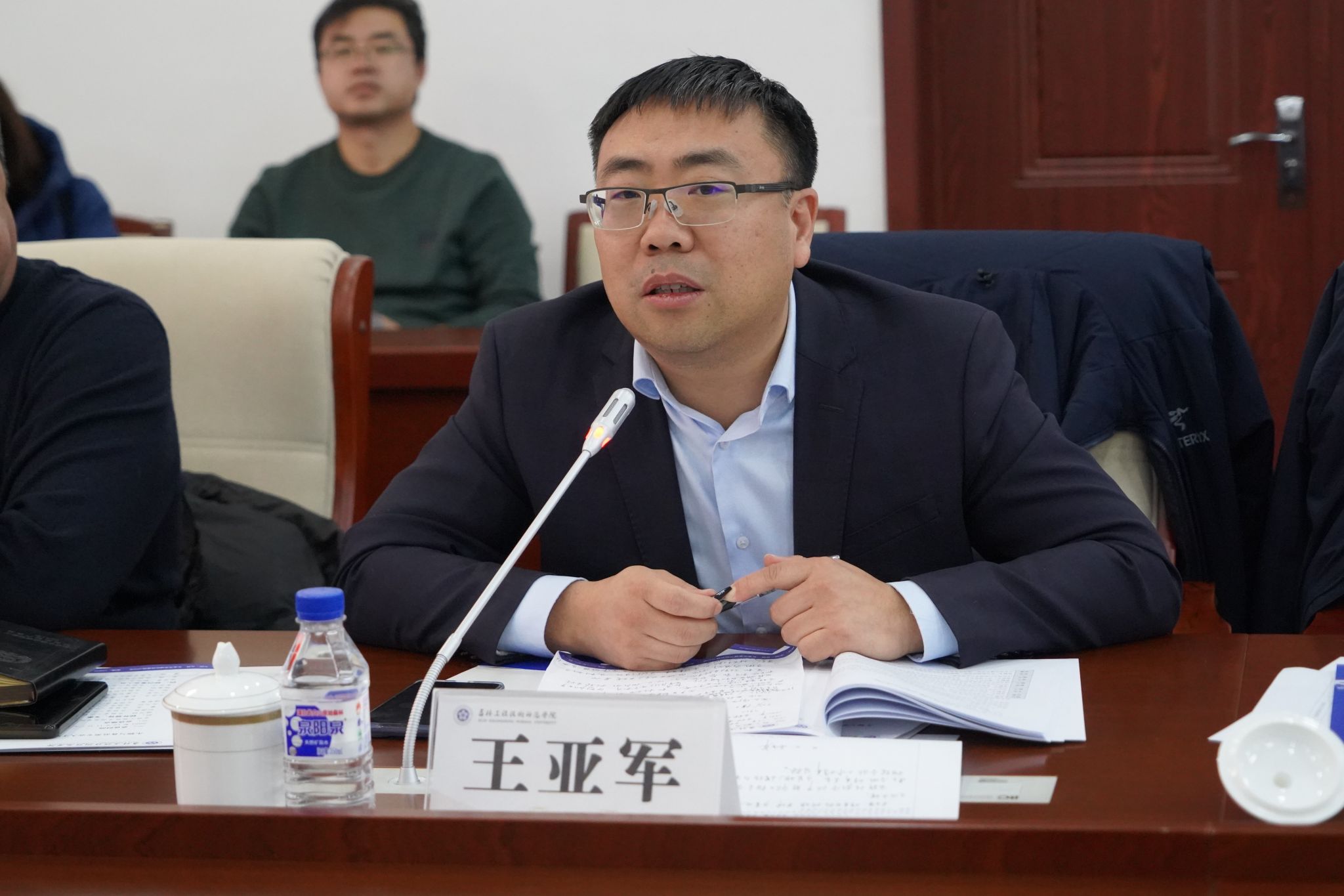 王亚军总监介绍长春百克生物科技股份公司未来的发展战略,回顾了公司与学院在学生实习与就业方面的合作历程,表示公司将一如既往地支持学院的发展,为学生提供更好的实习实训环境,促进学生高质量就业。