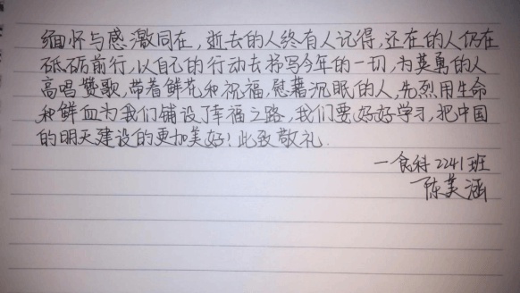 永利官方网站本次红色经典学习交流会结束后各团支部成员感受颇深,纷纷以书写缅怀寄语、创作散文诗歌等多种形式寄托哀思。