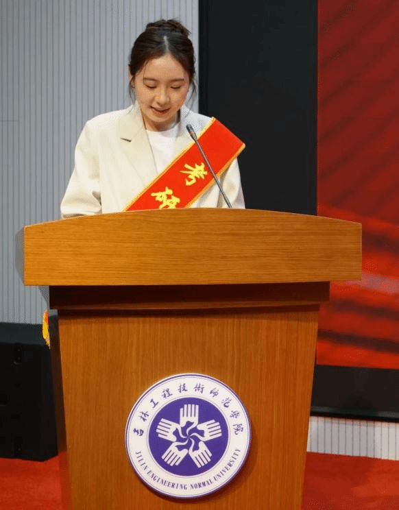 王诗乔作为毕业学生代表进行发言,她提及从大一懵懂到大四不舍的成长历程,难忘首次进校门、入社团、做实验、拿奖学金等诸多“第一次”,感谢考研路上伙伴与老师的支持,也见证了母校本科评估通过、学院硕士点首次招生、实验室和图书馆改造等发展变化。她表示将带着母校精神踏上新旅途,服务社会、回馈母校,并分别向母校、学院、老师、学弟学妹及毕业生送上美好祝愿。